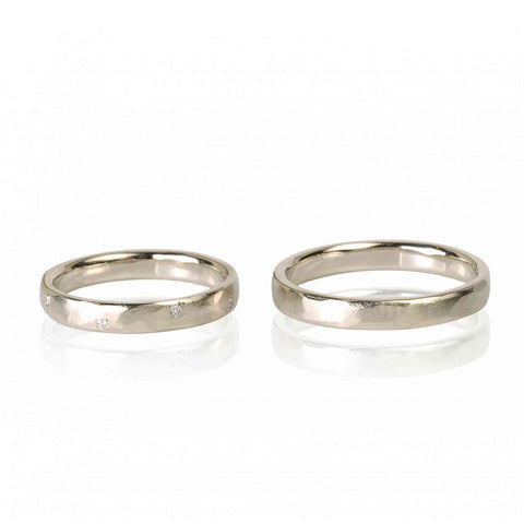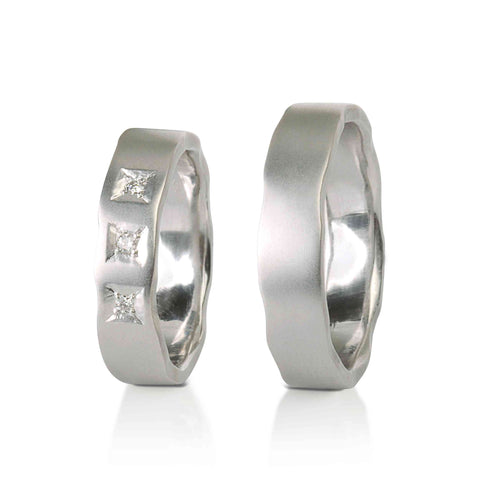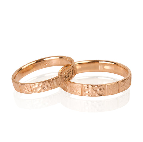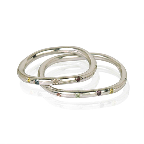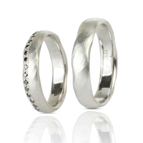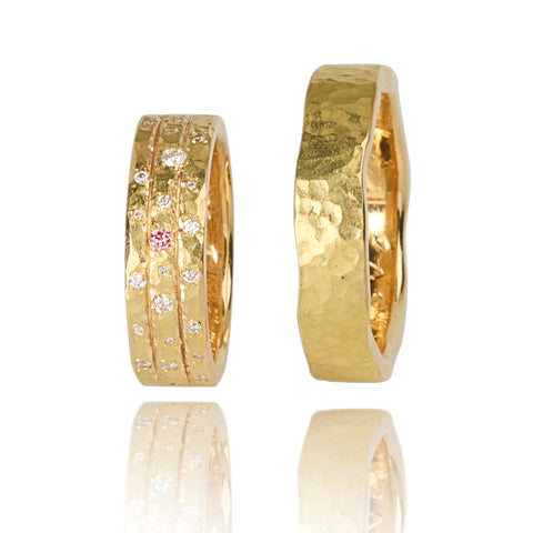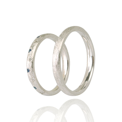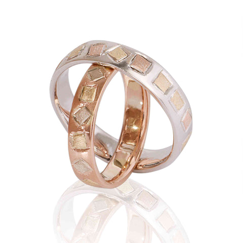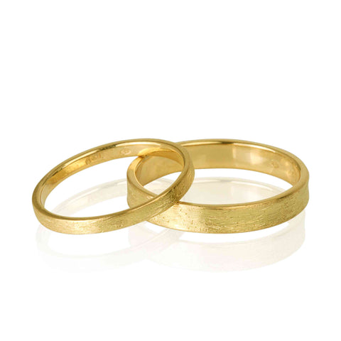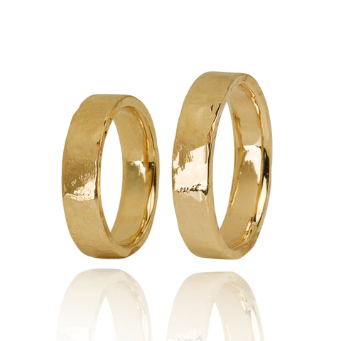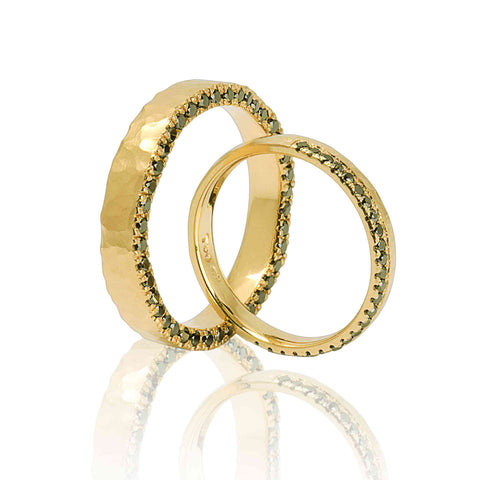 - The provided text does not contain any technical specifications. The image shows two rings, one gold and one silver, but no details about material or stones are given. Therefore, I cannot provide a list of specifications.