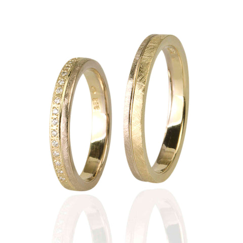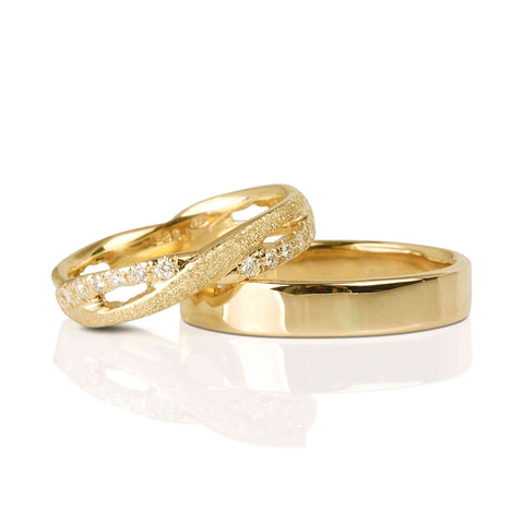 Set Verighete "RUDY" Aur Galben si alb 14K Cu Diamante